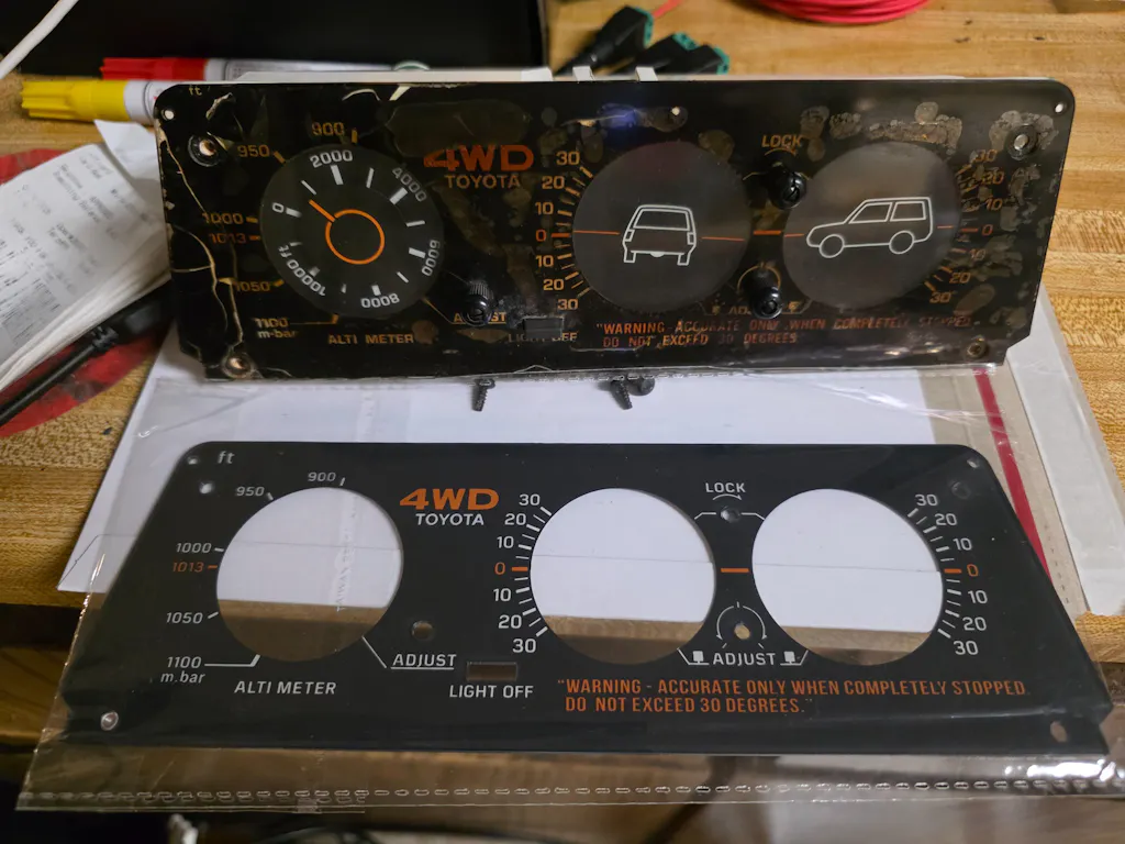 Each plate is designed to closely match the original Toyota gauge face layout and styling.