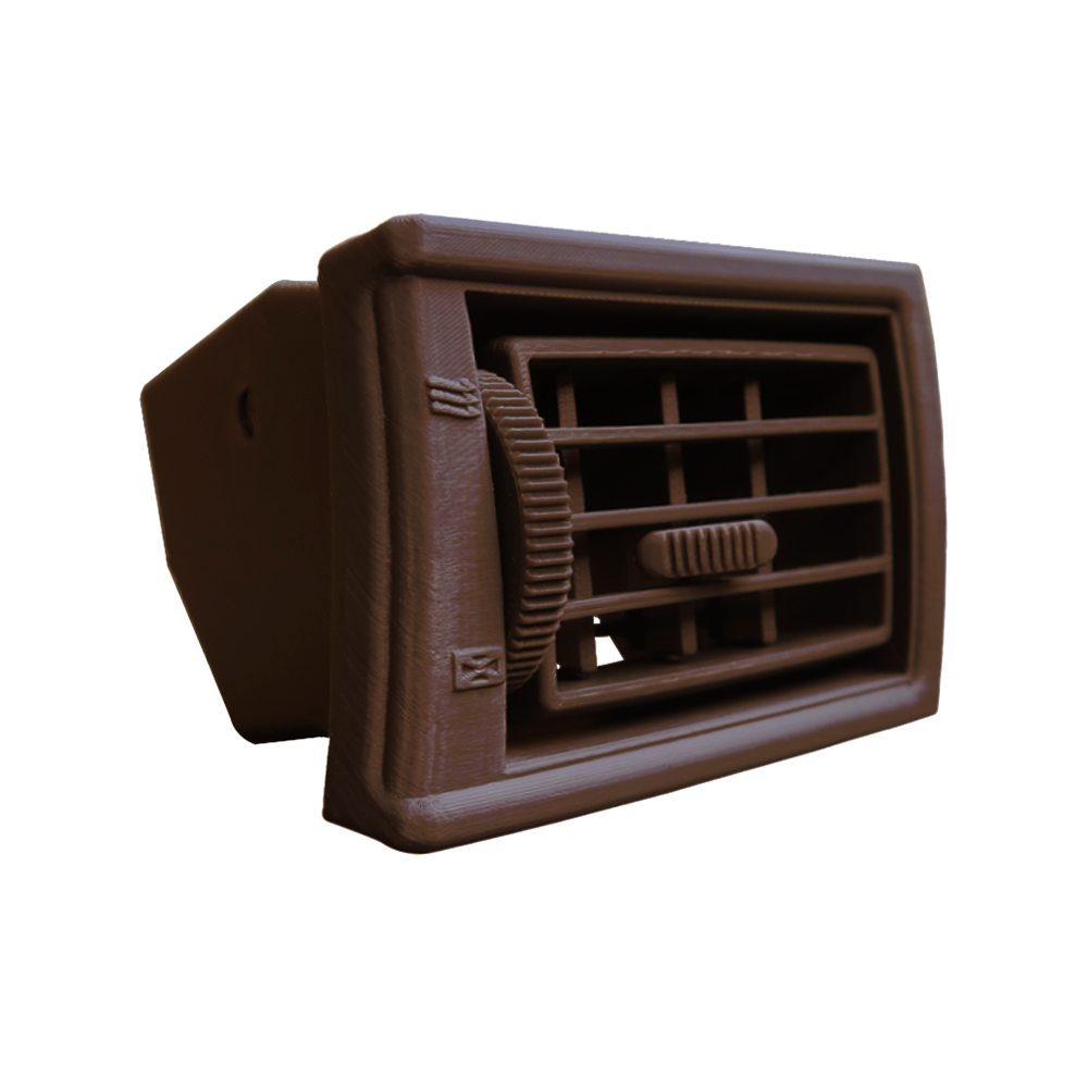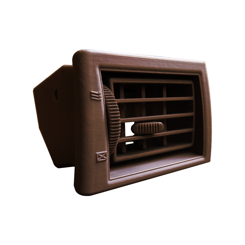 To further enhance durability, we’ve reinforced the weak spots we saw when modeling after the OEM counterpart. Each unit is 3D-printed with adaptive layering technology, minimizing visible layer lines, especially along the face, for a cleaner, more refined finish. We've also addressed the common issue where the inner portion of the vent fails to stay in place or flops around, making it difficult to direct airflow properly. Our A/C vents are designed to stay securely in position while maintaining the smooth sliding action of the original. Proudly made in the USA, these A/C vents are a direct-fit replacement, requiring no modifications, and maintain the original look and functionality.