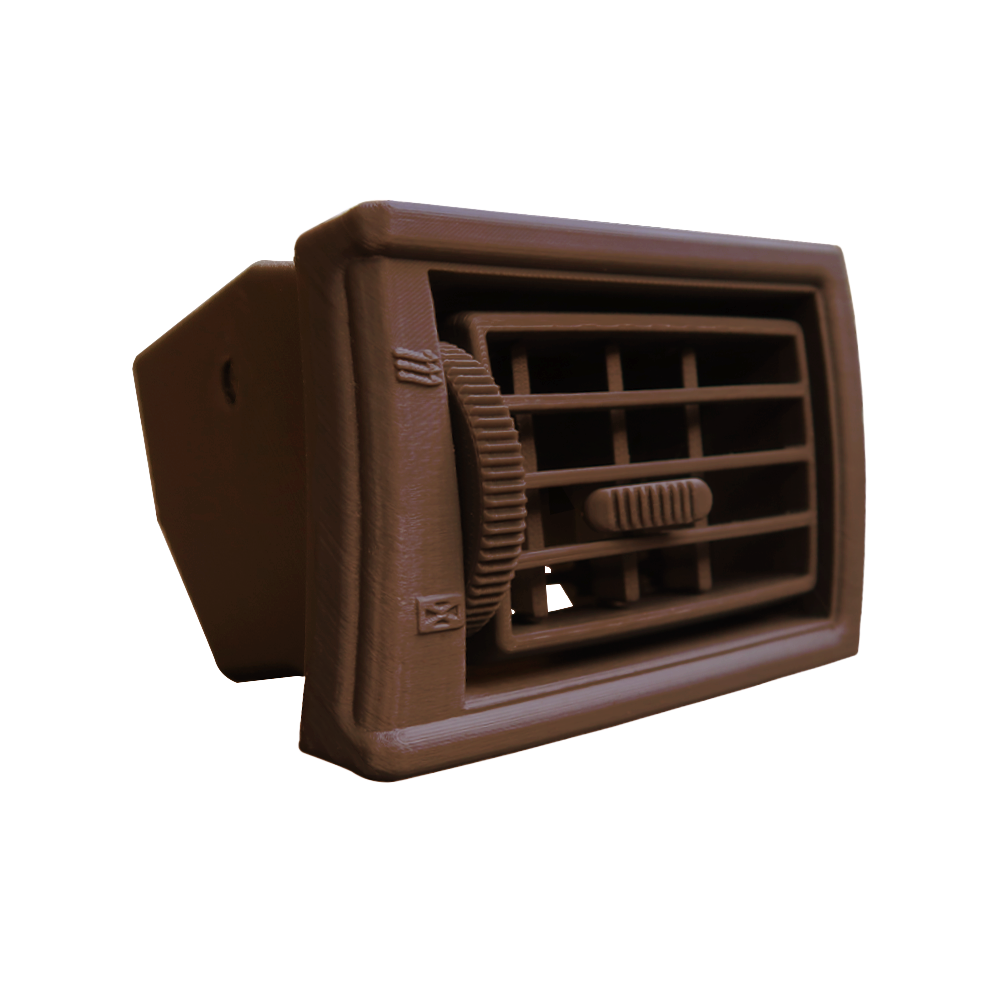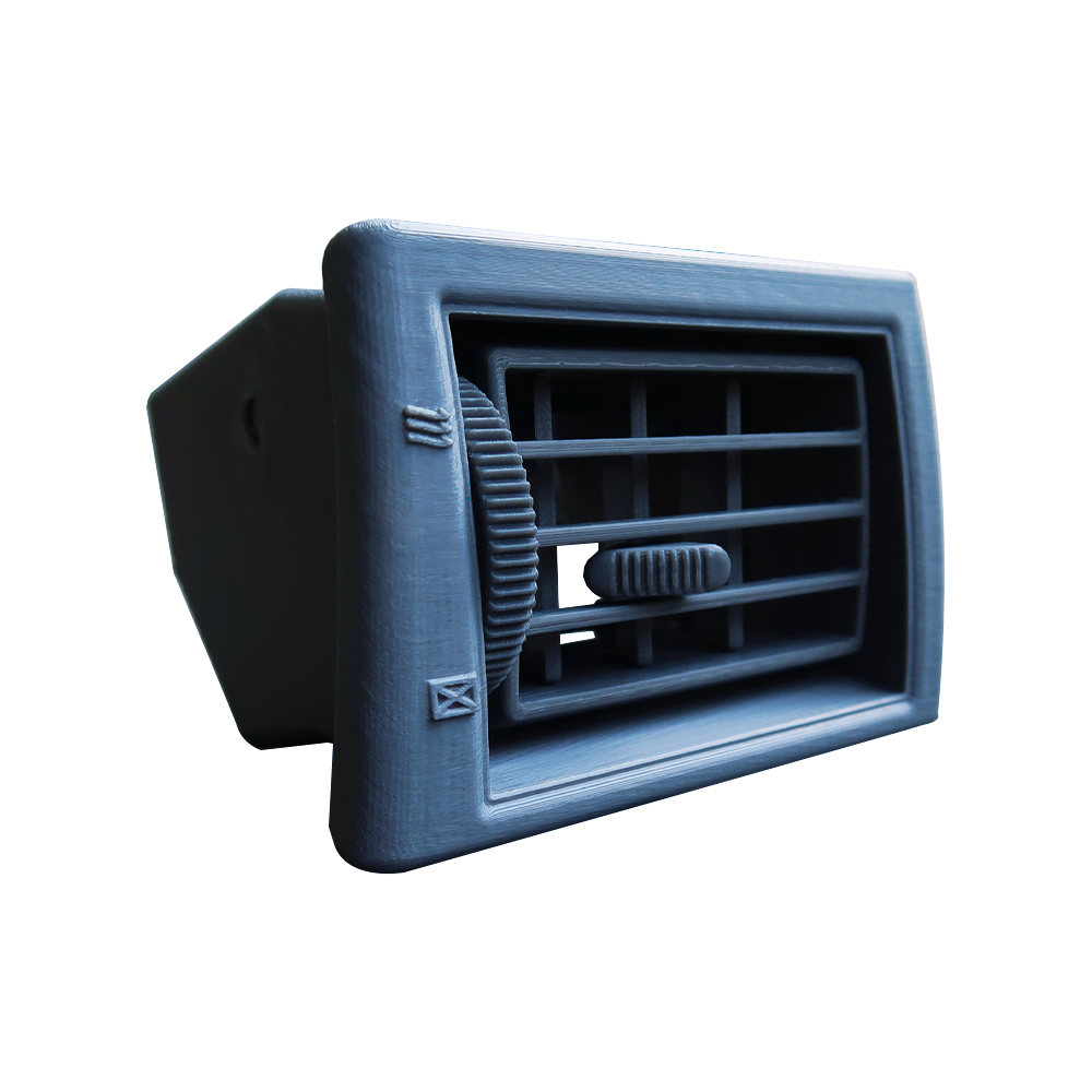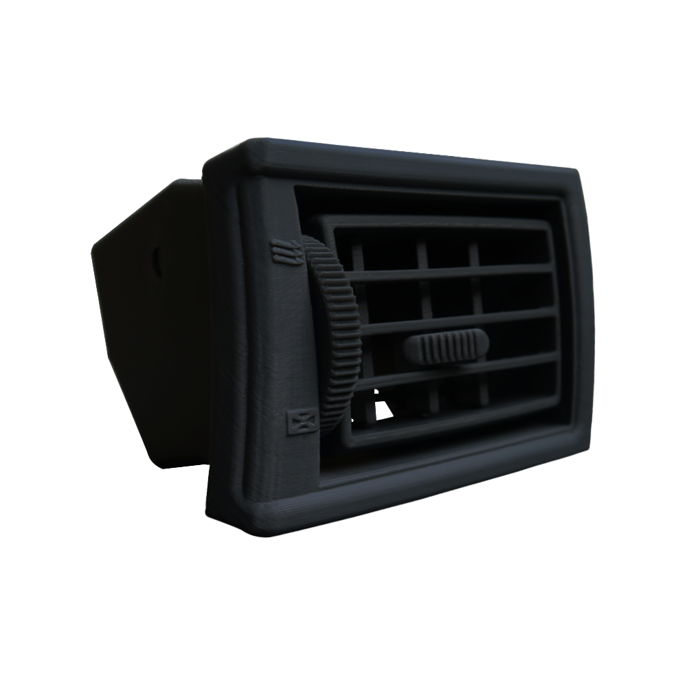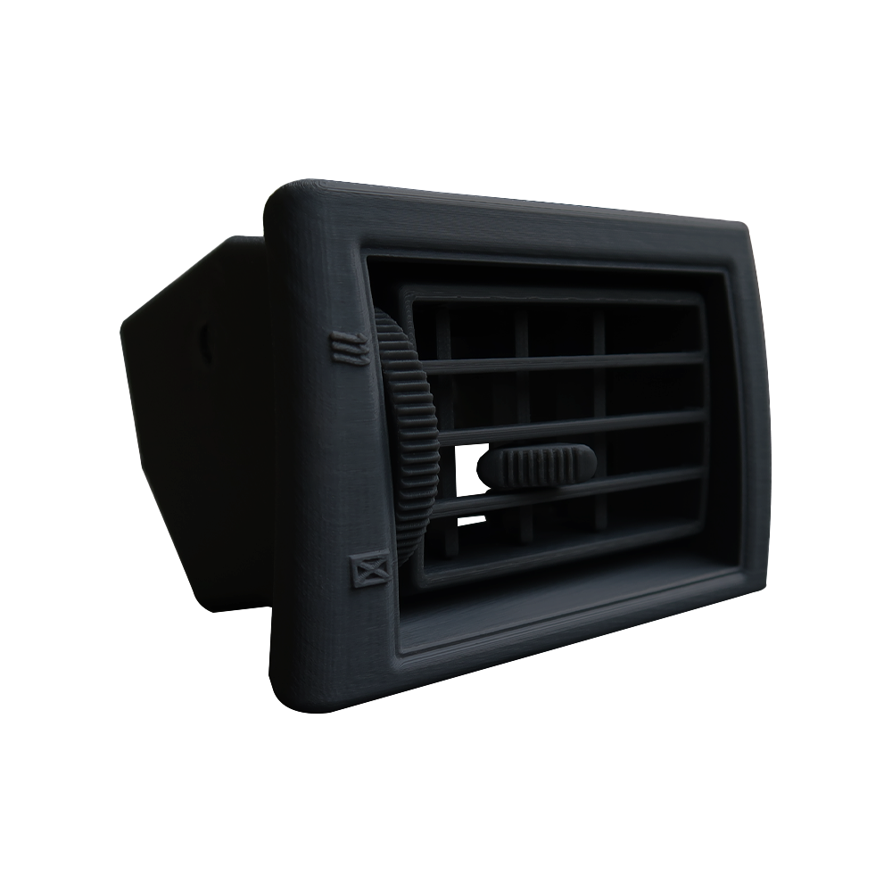 To further enhance durability, we’ve reinforced the weak spots we saw when modeling after the OEM counterpart. Each unit is 3D-printed with adaptive layering technology, minimizing visible layer lines, especially along the face, for a cleaner, more refined finish. We've also addressed the common issue where the inner portion of the vent fails to stay in place or flops around, making it difficult to direct airflow properly. Our A/C vents are designed to stay securely in position while maintaining the smooth sliding action of the original. Proudly made in the USA, these A/C vents are a direct-fit replacement, requiring no modifications, and maintain the original look and functionality.