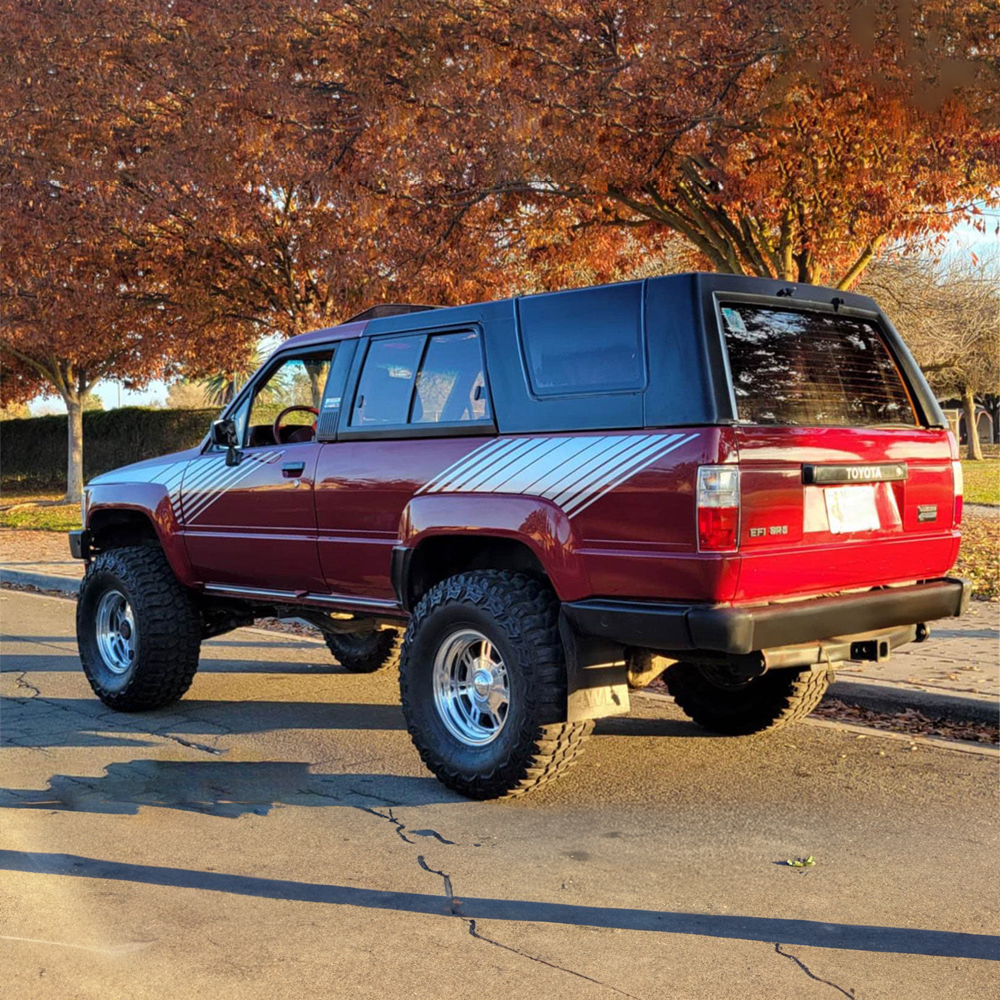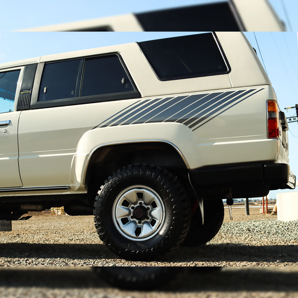 Note: This decal is designed specifically for 1st Gen 4Runners and is not compatible with 2nd Gen Pickups. The Pickups feature a different decal design and have differently shaped wheel arches.