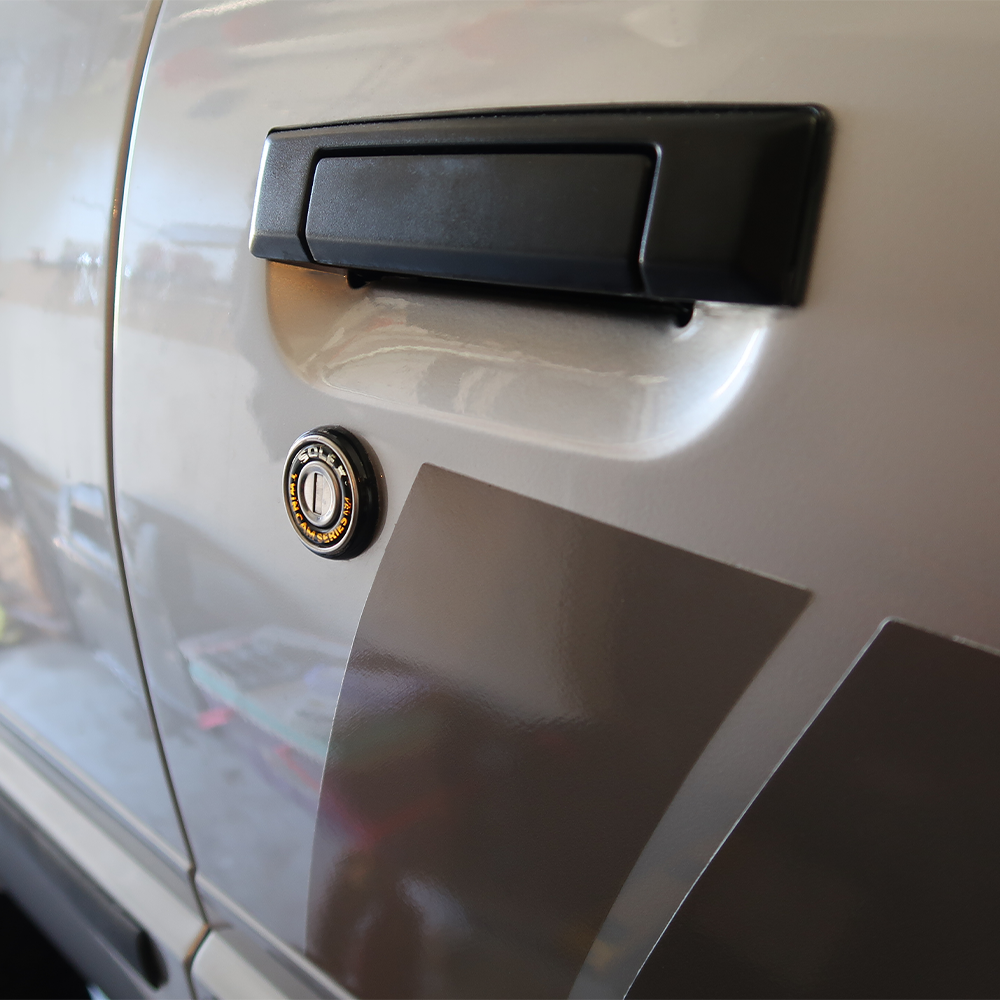Note: SOLEX Locks are designed to fit universally into any flat-surfaced lock cylinder hole, as each kit includes multiple fitting options. However, if the lock cylinder hole is recessed, such as on the gas cap of a 1984–1989 Toyota 4Runner, minor sanding may be required to the black plastic surround trim for a flush fit, since the SOLEX lock face is slightly larger in diameter than the OEM unit. These locks are intended for mechanical applications only and may not be compatible with electronic or power-operated locking systems.