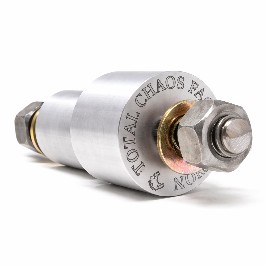 The Total Chaos Aluminum Uniball Press Tool is designed to simplify replacement of 1 inch uniballs on Total Chaos upper and lower control arms for Toyota 4WD applications. This compact press system allows you to remove and install uniballs without removing the control arms from the vehicle, reducing downtime and simplifying maintenance.